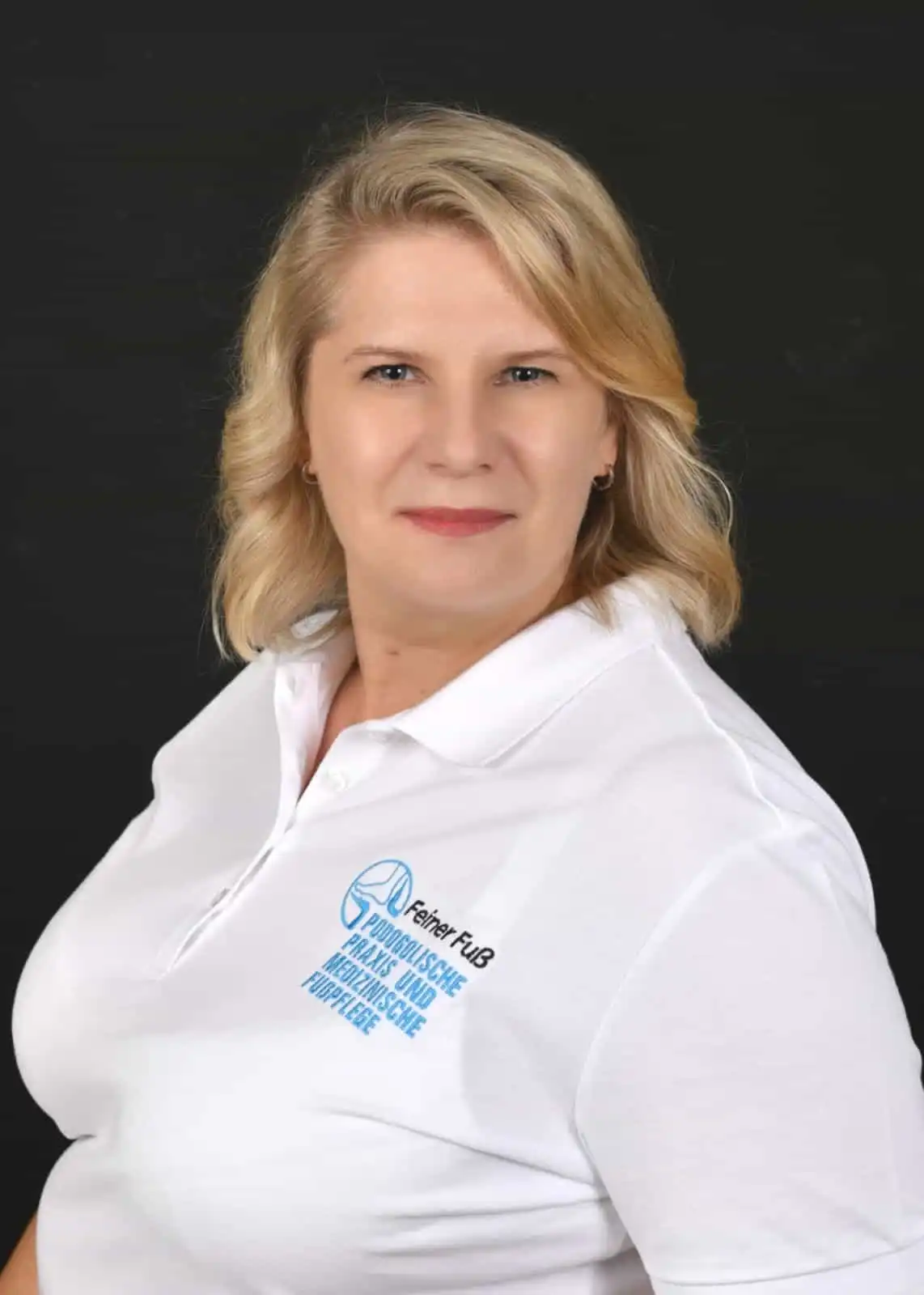 Guten Tag, ich bin Katharina Kasperczyk, Ihre ärztlich geprüfte Fußpflegerin. Mit meiner langjährigen Erfahrung und Leidenschaft für Fußpflege bin ich hier, um Ihren Füßen die beste Pflege zukommen zu lassen. Vertrauen Sie auf meine Fachkenntnisse, um Ihre Fußgesundheit zu fördern.